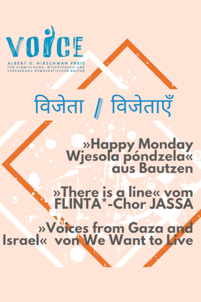 VOICE Albert O. Hirschmanowa Nagrada je kóždy lěto přiznjata pšosću Stiftung Kommunikationsaufbau – na pamičku ekonoma, sociologa a přemyšľarja Alberta O. Hirschmana (1915–2012).