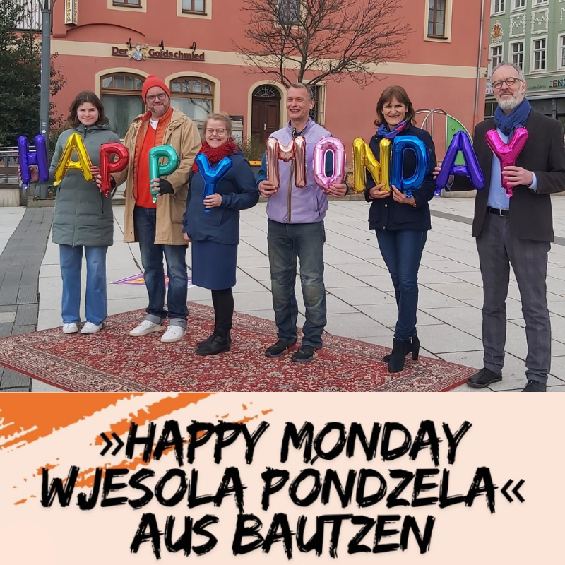 Náš wuběrny dźak mjóza całeho Happy Monday-zbóžkow – wšěm, kotřiž so angažěruja, podpiraja, pśeměnjuja abo jano swoju přeco wustajom pśipominaja.