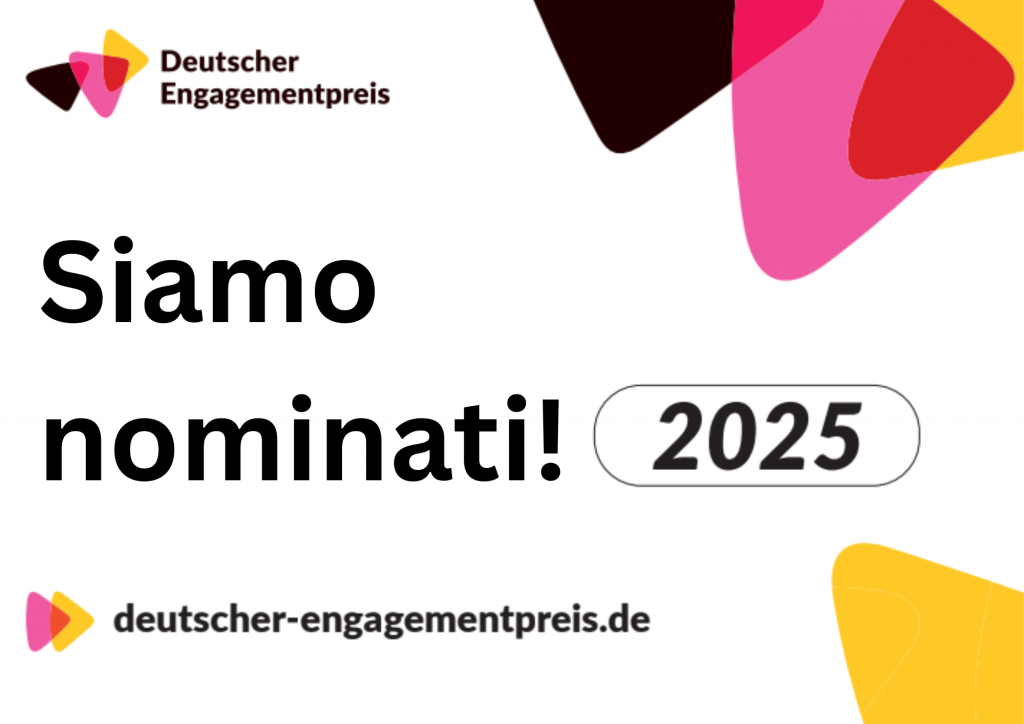 Dopo aver ricevuto il Premio del Ideenwettbewerb machen!2024, siamo stati nominati dall’ufficio competente. Questa nomina proietta il nostro lavoro verso il palcoscenico nazionale, e siamo orgogliosi di far parte di una rete forte di iniziative impegnate.