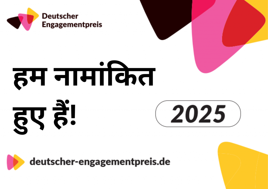 Ideenwettbewerb machen!2024 पुरस्कार प्राप्त करने के बाद हमें संबंधित पुरस्कार कार्यालय द्वारा नामांकित किया गया। यह नामांकन हमारे कार्य को राष्ट्रीय मंच पर लाता है, और हम समर्पित पहलों के मजबूत नेटवर्क का हिस्सा बनने पर गर्व महसूस करते हैं।