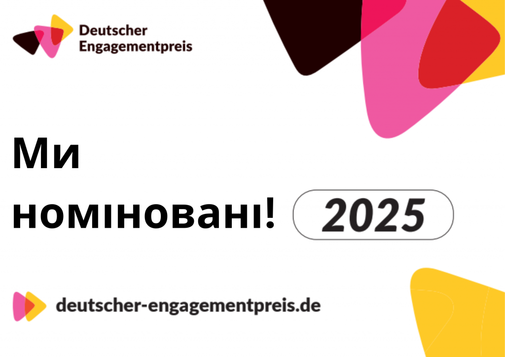 Отримавши Приз Ideenwettbewerb machen!2024, ми були номіновані відповідним офісом. Ця номінація виводить нашу роботу на національний рівень, і ми пишаємося тим, що є частиною потужної мережі відданих ініціатив.